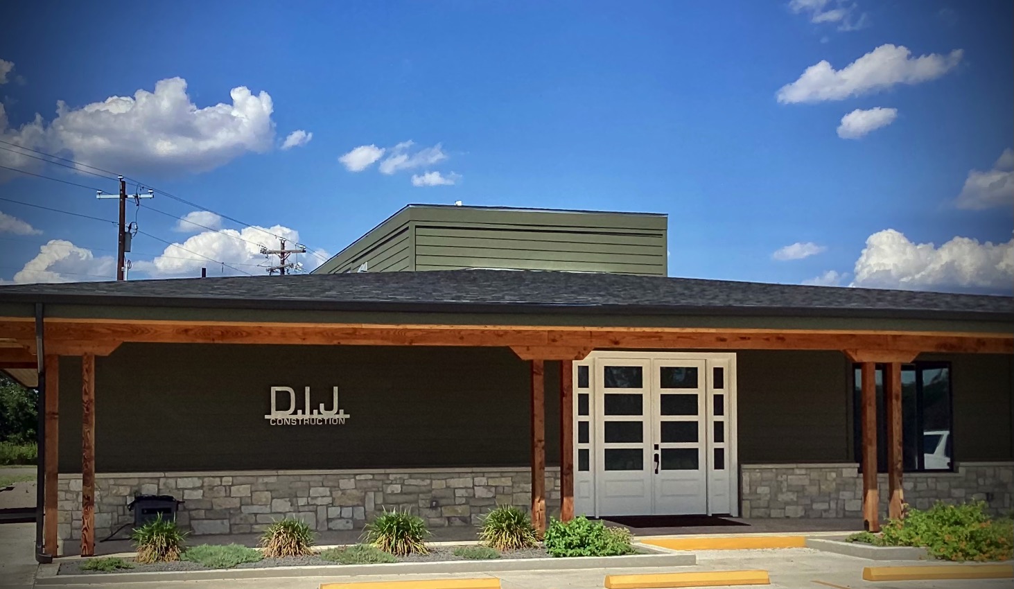 It’s always fun to come in at the start of a project. Here’s a business that we helped to make uniquely gorgeous and noticeable in the right way – melt in your eyes deep green contrasting with stone and cedar, dark trim coordinating beautifully with the windows and the not to be missed welcoming front door. One of the days I’ll get photos of the inside lol