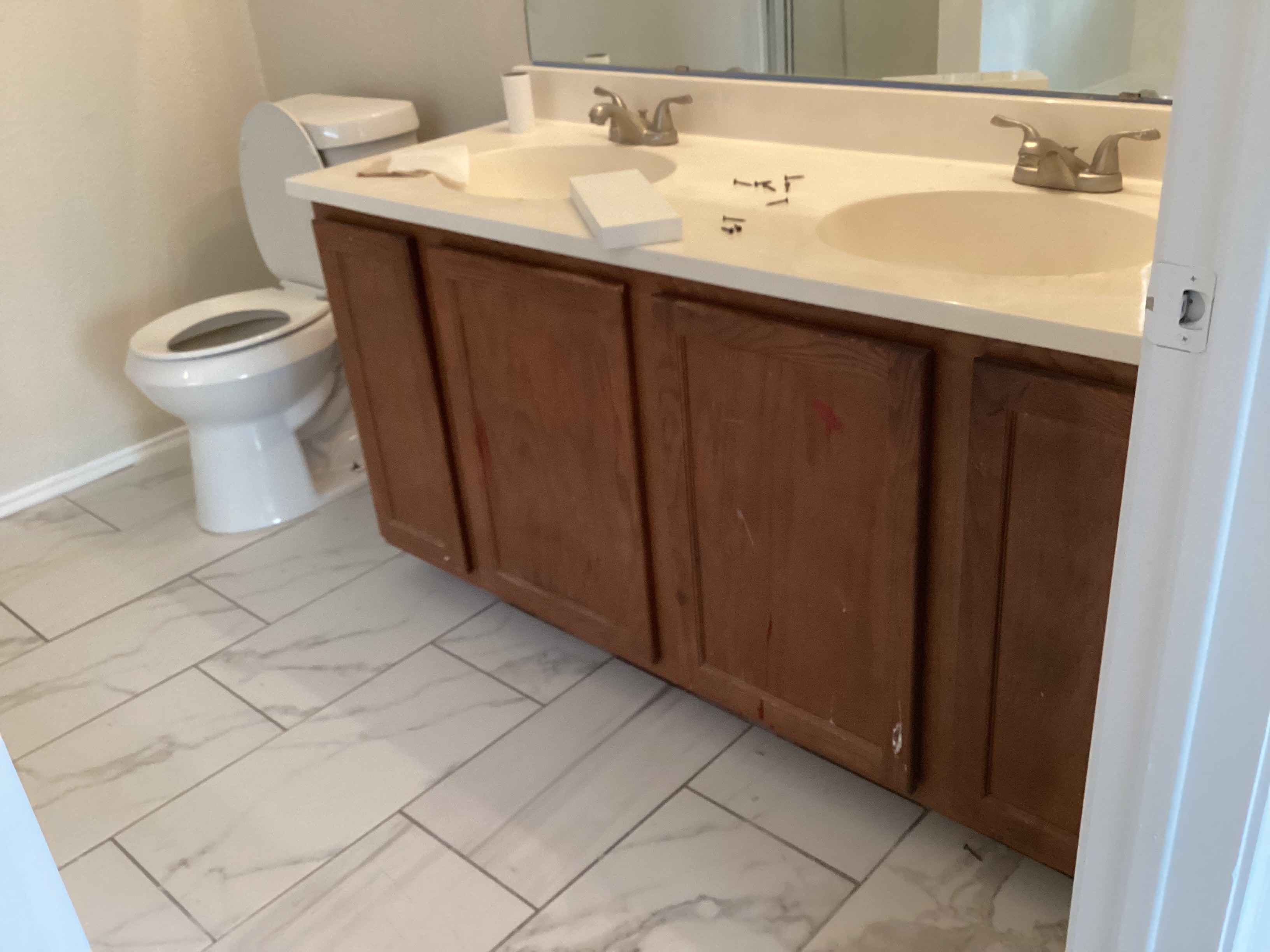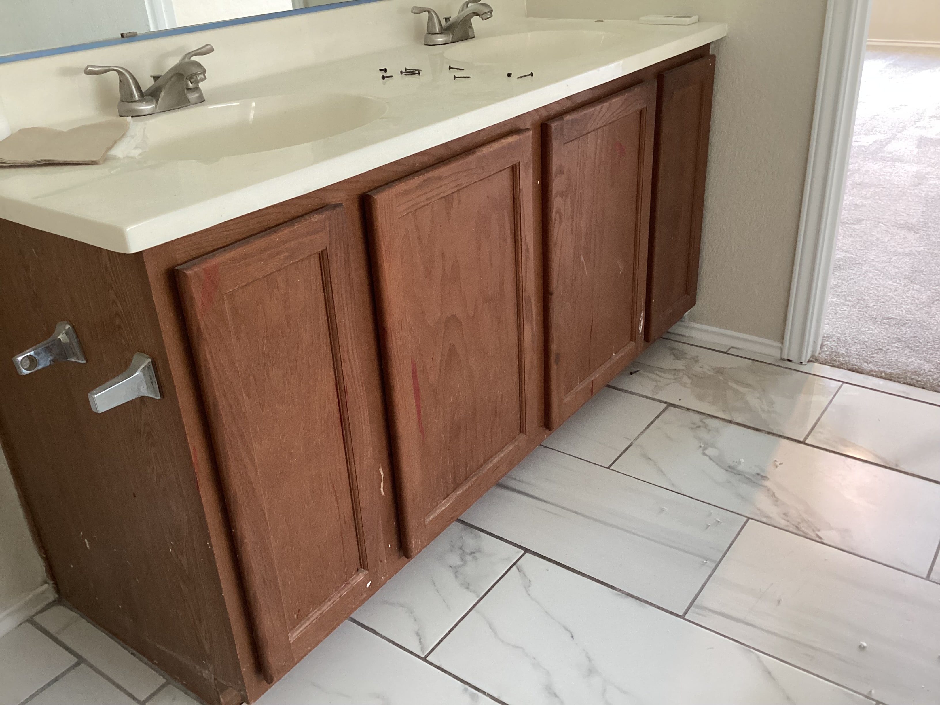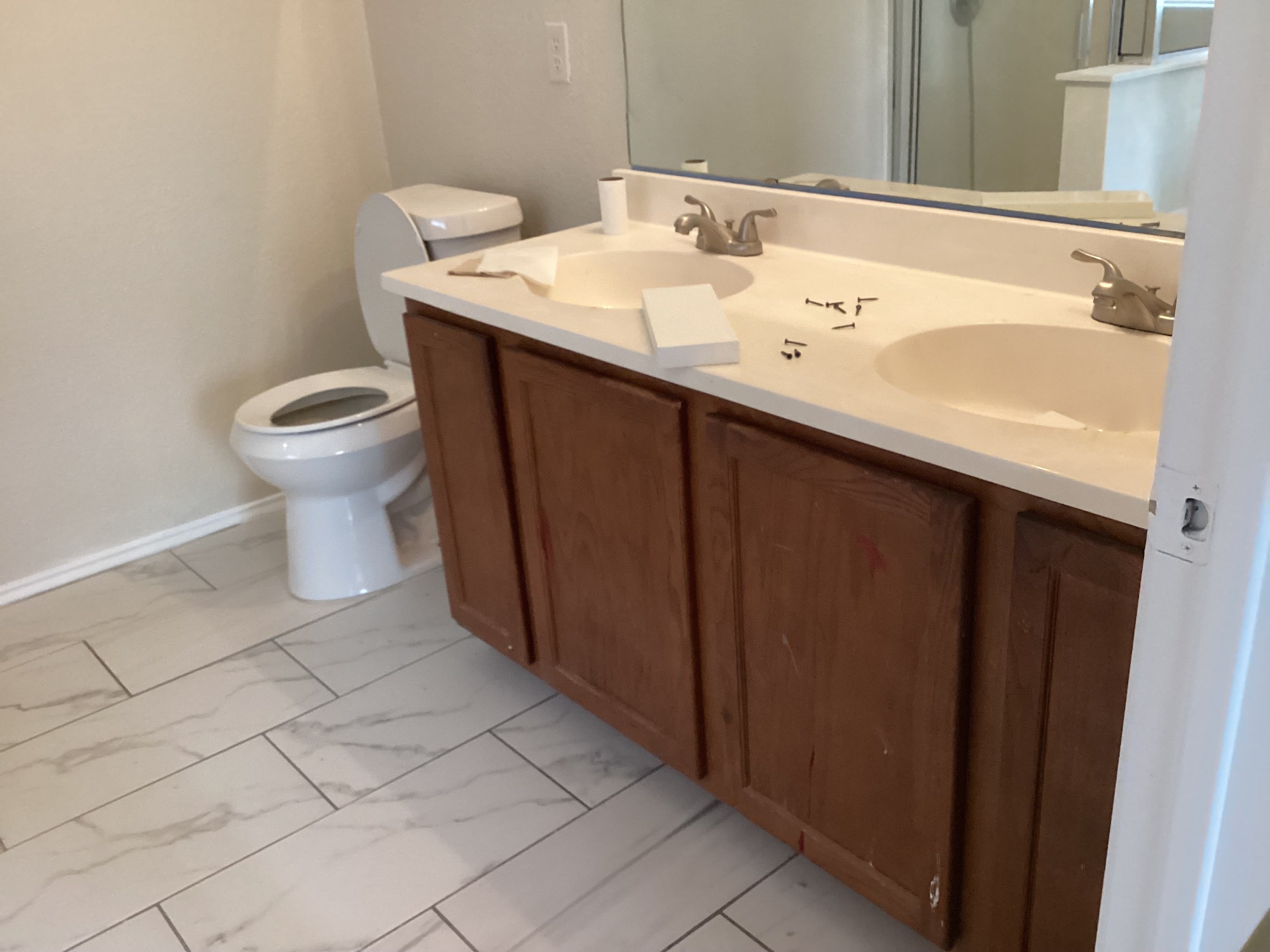 We started out with the kitchen and now here’s the baths. Quick reminder from part one, this property is being prepared to sell.